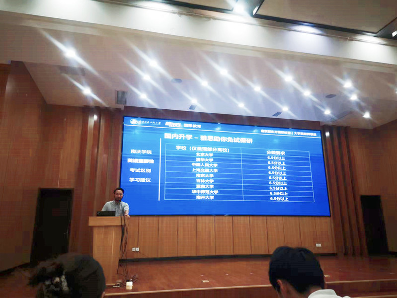 在大学生涯规划篇章中,新东方教育科技集团国际教育中心英联邦项目主管何杰从南卧学院英语学习要求、英语学习的重要性、英语考试种类横向对比、英语水平提升方法与建议等四个方面为同学们带来了实用的英语学习能力提升讲座。随后,郑晓坤介绍了大学生涯规划中出国、考研、就业三条路径的关键点,希望同学们正确认知自我,以专业兴趣为出发点,充分利用好中外合作办学的资源平台,努力形成自身的成长优势,同时学院也通过推进国际胜任力培养计划、语言进阶支持计划、梦想公开课优秀学子经验分享等多种路径助力学生成人成才,搭建更多更好的国际化平台,致力于培养具有家国情怀、国际视野、前瞻思维、探索精神的信息工科卓越人才。