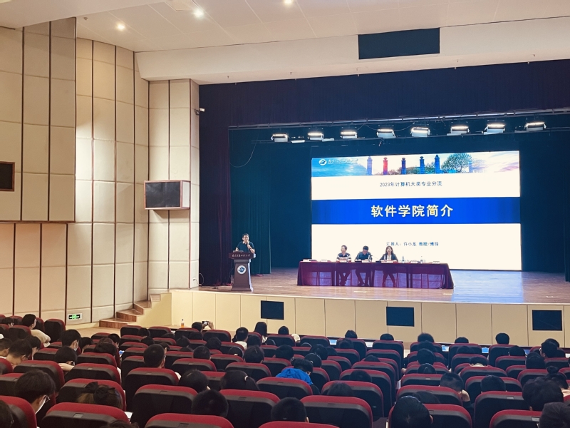 5月16日,由计算机学院、网络空间安全学院和软件学院共同举办的2022级计算机类专业分流宣讲会在大学生活动中心小剧场顺利开展。软件学院党委副书记(主持工作)巨传友、副院长崔萌萌、党委副书记水泱、院长助理许小龙,计算机学院副院长庄伟、党委副书记朱文镇及各系系主任参加此次宣讲活动。