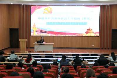 刘影以《中国共产党发展党员工作细则》为主题,介绍了党员发展的主要流程。她首先对党员发展程序进行了简述,包括团组织推优、积极分子培养教育、发展对象确认、预备党员发展及考察、预备党员转正这五个重要环节。随后,围绕党员发展的各个环节进行了详细的介绍。她强调,发展党员工作是一件很严肃的工作,每一项工作、文件都需要认真对待,并着重说明了其中所需注意的问题与事项,使同学们更加了解入党所要经过的磨炼。