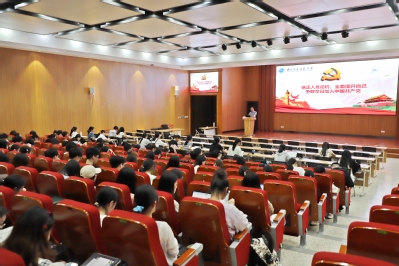 范天森以《中国共产党的优良传统与作风》为主题,结合党史、时事热点和切身经历,生动地介绍了中国共产党的优良传统与作风,包括对党忠诚的政治品质、理论联系实际的优良学风、批评和自我批评的纯洁作风、敢于斗争、善于斗争的鲜明品格和艰苦奋斗的政治本色。他表示,党的光荣传统和优良作风,是在党的百年征程中不断传承和弘扬的,是在新的历史条件下不断发展和巩固的,是一个逐步完善和升华的有机整体。最后,他寄语同学们:只有道德和能具道德的人格才是有尊严的;只有不断寻找机会的人才会及时把握机会;成功的秘诀在于坚持自己的目标和信念。