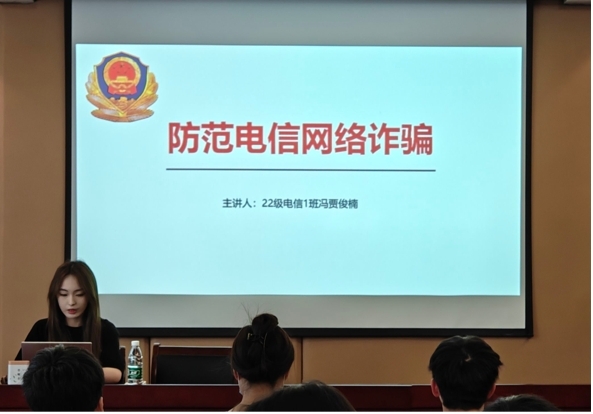 随着网络的发展,骗子的骗术层出不穷,熟悉不同骗术的套路有助于保护师生生命财产安全。为了进一步增强学生安全防范意识,提高学生防范电信网络诈骗的能力,电信院生活部于5月13日下午在学科二号楼N201举行防范电信网络诈骗宣传教育讲座,电信院辅导员杨琪及学院全体宿舍长参加讲座。