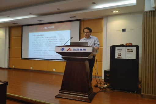 刘雨华以“端正入党动机、坚定崇高信仰、不忘初心使命、践行使命担当”为学习大纲,徐徐展开讲解。他重点强调了端正入党动机的重要性以及基本要求,向同学们传递了抗战时期革命先烈信仰的力量,展示了现代中国无名英雄们不忘初心,牢记使命,不惜一切代价保护人民生命安全的伟大事迹,同时激励每一位入党积极分子要心怀使命、肩负担当,不仅要向历史英雄学习、向书本学习,更要投入社会主义现代化建设的实践中去,用实际行动践行初心。刘雨华还为大家讲述了自由言论与言论自由的区别,提醒参会学员在享受言论自由的权利的同时承担相应的义务,为自己的言行负责。