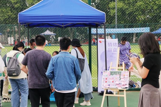 教师院承办了包括“情绪盲盒”心情交换、“我写我心”集体写诗、“心有千千结”编绳折纸和日落音乐跑四项活动,通过文字抒情、活动生情、运动抒情,为同学们提供心理解压的多样方式。“情绪盲盒”心情交换活动,邀请同学们写下自己的烦恼,又在烦恼墙上互相帮助和解答其它同学的烦恼,不良情绪在生生互动中获得朋辈的共情与理解。“我写我心”集体写诗活动中,同学们在白板上写下喜欢的诗句或是原创诗歌。“平芜尽处是春山”,跨越千百年的情绪共鸣,调适情绪,自愈心灵。在“心有千千结”编绳折纸活动上,烦心事被结编成花绳,记录在彩纸上,形成一件件精美的手工作品,一方面放松身心,另一方面提高专注力。日落音乐跑活动,受到同学们的广泛参与,大家互相约跑,通过运动疏解压力。