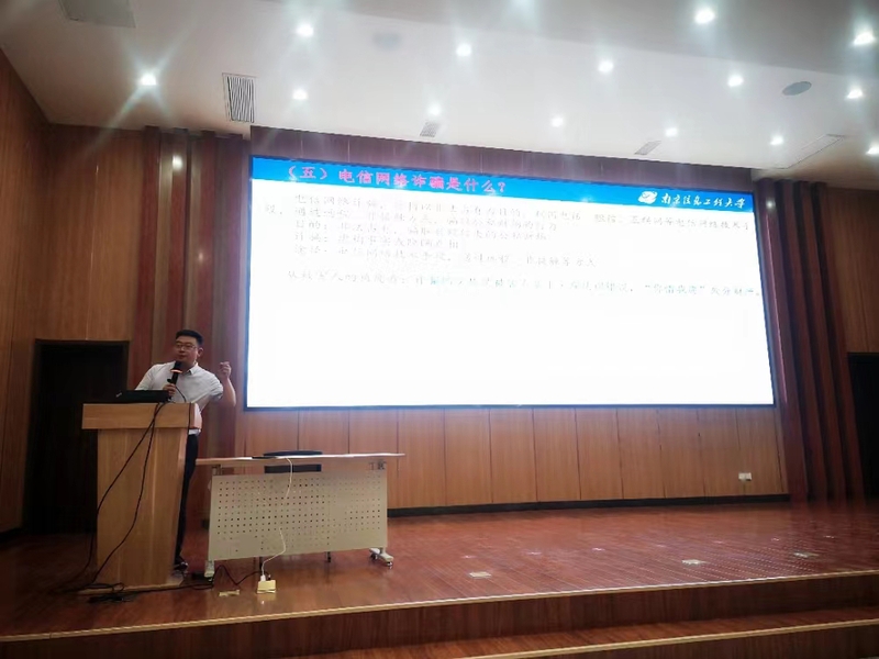 最后,校保卫处、武装部防诈宣传专员徐蒙田老师为同学们做了题为《精准剖析网络骗局,切实提高防骗技能》的电信网络诈骗宣教讲座。徐老师从剖析典型案例、掌握诈骗手段、自觉遵纪守法、远离违法犯罪等四个方面,用鲜活生动的案例给同学们详细分析了几种常见的诈骗类型以及被诈骗的原因,并教授了同学们遇到诈骗后如何进行补救,最后他分享了自己对于大学生安全教育的体会,改变态度是大学生应对电信网络诈骗的关键,希望同学们能够意识到防诈教育与自身切身利益息息相关,毕竟宣传教育永远唤不醒一个“装睡”的人,要将防诈技巧“内化于心,外化于行”,引起心理上的共鸣,做遵守规则的人,不要等到结果发生在自己身上的时候才领悟到危害后果。