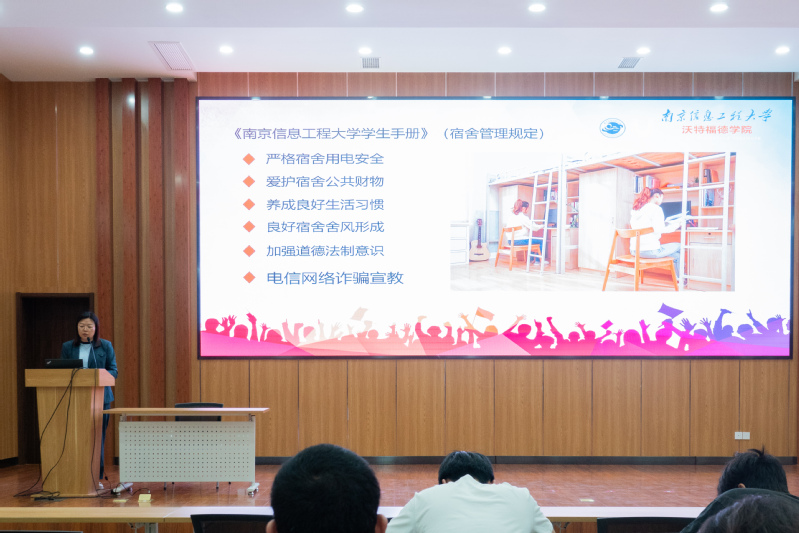 宿舍是学生日常生活与学习的重要场所,是学生在大学期间的第一社会、第二家庭、第三课堂。为了进一步培养学生良好的生活卫生习惯,营造干净整洁、健康文明的宿舍环境,沃特福德学院于5月25日下午,在滨江楼报告厅举行学院2022年度星级文明宿舍表彰大会暨防诈宣传教育讲座。活动邀请了校保卫处、武装部防骗宣传专员徐蒙田老师,沃特福德学院党总支副书记(主持工作)丁媛媛以及2022级全体同学参加活动。会议由学院学办主任郑晓坤主持。