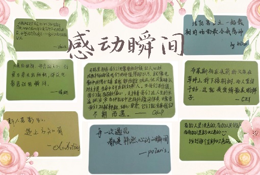 《怦然心动》根据文德琳·范·德拉安南的同名原著小说改编,描述了青春期男孩女孩之间的有趣战争。影片中,一个男孩,一个女孩,在温暖有趣的氛围中,以男女主人公为第一视角,讲述了他们二人懵懂的情感故事。观影过程中,前来观影的同学都耐心专注,保持安静,沉浸体验这部感动人心的电影。虽然影片只有一个半小时,但是给同学们带来了内心的触动和深刻感悟。互动环节中,同学们在卡片上写下令自己最为心动的电影瞬间,感动的电影情节,抑或是自己经历过的往事。其中不乏有现场分享卡片的同学争先分享自己当时的观影感受和感动,现场气氛活跃。笔名为achiliesde的同学写道“斯人若彩虹,遇上方知有”;另一位叫Whalek的同学则写道:“布莱斯在电影结尾时种下了新的梧桐树,同时,他和朱莉之间的爱情种子也随之发芽。希望我也能遇见一个彩虹般绚丽的人。”他们都表达了对此情此景的感动和对美好爱情的向往。每一位主动分享的同学收获了感动,也收获了精美的小礼物。