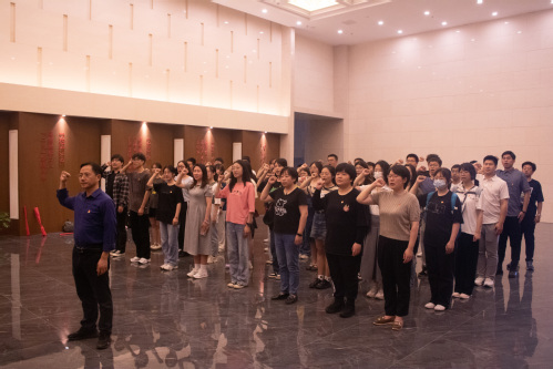 接着,陈建坤带领所有新发展的预备党员,面向党旗,庄严宣誓,随行各支部党员也加入其中,重温了一次入党誓词。宣誓之后陈建坤寄语新入党同志,希望新同志们牢记自己的“政治生日”,不忘初心,砥砺前行,通过此次活动汲取精神力量,领悟先进思想,坚定理想信念。