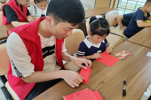 活动以游园会的形式开展,设置了丰富的闯关活动供小朋友体验。环节的设置紧贴红色主题,小朋友通关后即可获得印章,兑换心仪的小礼物。让小朋友们可以在学习娱乐中增强他们爱国爱党爱家乡的情怀。活动第一关是夹乒乓球,小朋友们成功夹起5个即可通关。乒乓球是中国的国球,活动开始之前,志愿者先为小朋友们简单介绍了中国乒乓球的历史和国球精神文化,增强他们的文化自信和民族自豪感,让他们在玩耍的同时增加知识素养。第二关是拼图游戏,以红色故事为主题定制的拼图,可以让小朋友们在动手拼图的过程中增加了对人物的印象。在志愿者们的帮助下和引导下,小朋友们将一块一块的碎片拼凑在一起,慢慢还原出故事的原貌,一点点探索着拼图背后的故事和人物,领悟更深层次的人物精神。第三关是红船折纸,志愿者们耐心地讲解着折纸的步骤,小朋友们也听得聚精会神,折出了一艘艘灵动的红色纸船。红船寓意丰富。它的灵感来源于1921年中国共产党第一次全国代表大会召开地点——浙江嘉兴的一艘红色游船。志愿者们用具象的红船折纸引入党史的介绍,让小朋友们了解中国共产党诞生的历史,领悟开拓创新的红船精神的内涵。在集齐印章后,小朋友们找志愿者们兑换了心仪的奖品。