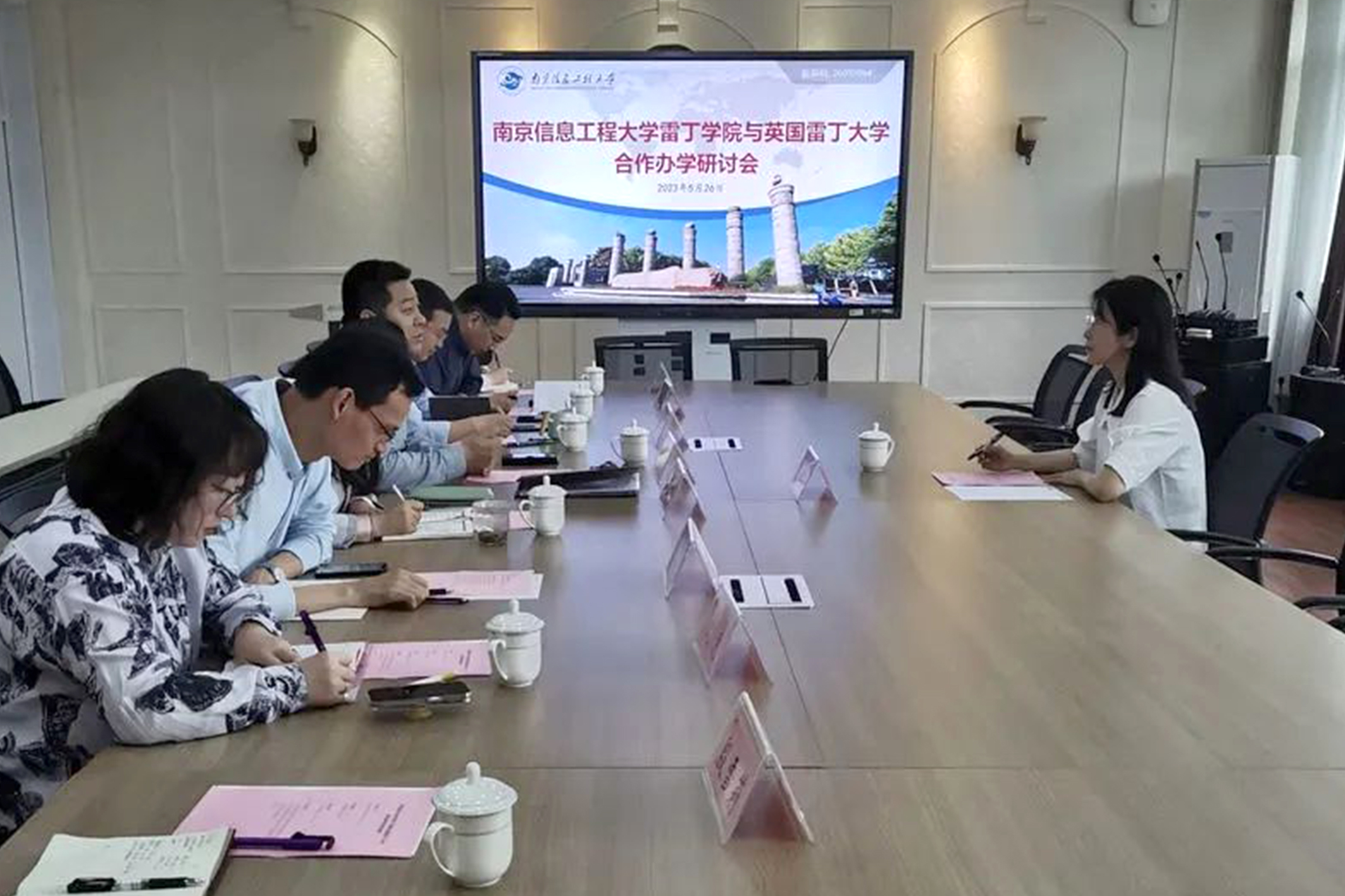 5月26日,英国雷丁大学经济系国际化主任徐芳雅来访雷丁学院,双方在雷丁楼N314会议室召开合作办学研讨会。雷丁学院副院长(主持工作)郭栋、副院长周锦、副院长陈耀登、党委副书记、副院长王海君、副院长(挂职)唐旭,以及相关工作人员出席会议。