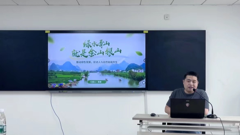 吴谦从习近平总书记关于“绿水青山就是金山银山”的论述出发,阐释尊重自然、顺应自然、保护自然的内在含义;回顾从十一届三中全会到党的二十大中生态文明建设的出场,讲述习近平生态文明思想的理论来源,并总结习近平生态文明思想的创新与发展;讲述鞍山钢铁厂、库布齐沙漠光伏发电站等案例,生动地向大家阐释建设社会主义生态文明和美丽中国是实现中华民族伟大复兴的中国梦的应有之义。
