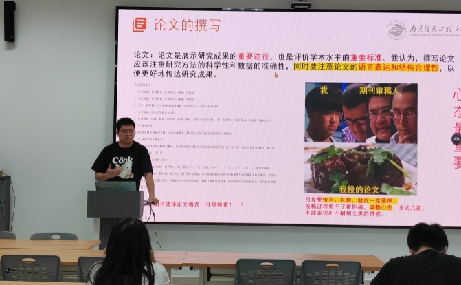 赵刘易斯同学生动幽默地向同学们介绍了论文写作到投稿的过程,他指出收到审稿老师大量修改意见时要告诉自己“还有机会!”他提醒同学们应当逐字逐句阅读审稿老师的修改意见,并且以平和的语气、严谨的措辞一一作出答复。另外,他还向同学们发出倡议,鼓励大家积极参加院校组织的各项活动,丰富研究生生活,提升自身综合素质。