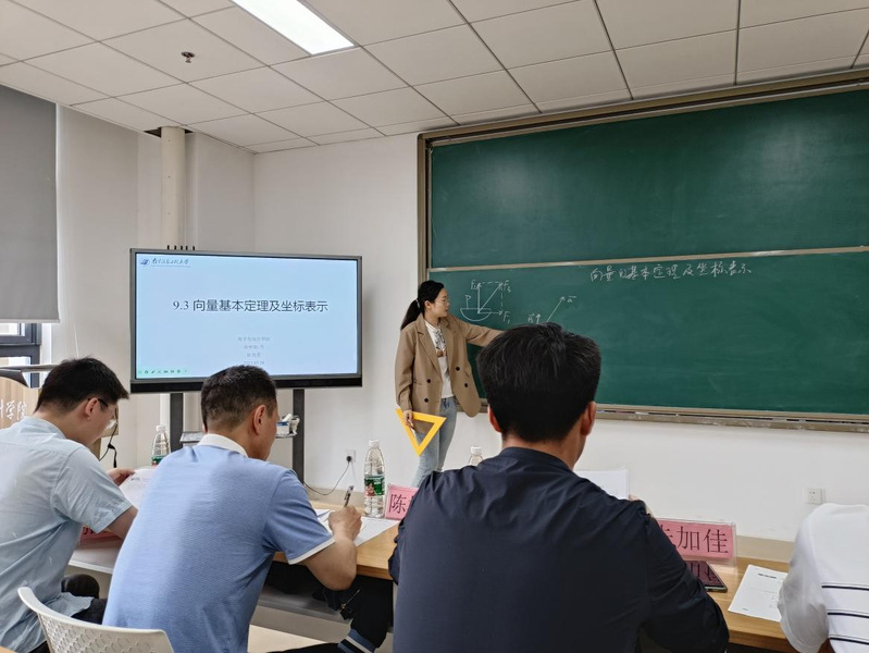 为促进学生高质量就业,提升学生教师考编能力,5月28日下午,数学与统计学院面向全院研究生和本科生举办了首届数学教学微课大赛。比赛在藕舫楼725开展,特别邀请到南京市鼓楼区数学学科带头人陈树平老师、南京市第五十中学朱加佳老师、南京师范大学博士生吴狄担任评委。经过前期报名和严格评审,共有7名研究生和3名本科生入围决赛,比赛分为高中组和初中组,分别围绕“向量基本定理及坐标表示” “多项式的因式分解”等题目进行现场授课。