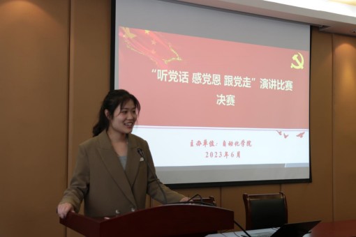 为深入学习宣传贯彻党的二十大精神,强化主题教育成果,增强广大青年学生的使命感和责任感,6月2日,自动化学院在学科2号楼N201报告厅举办了“听党话 感党恩 跟党走”主题演讲比赛决赛。学院团委书记杜林,学院党建中心指导教师刘悦,江苏省大学生艺术团指导教师、学院文体中心指导教师郑鑫,学院宿建中心指导教师高娜担任评委。