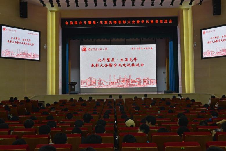 为深入学习贯彻党的二十大精神,推动习近平新时代中国特色社会主义思想主题教育走深走实,进一步落实上级部门关于高校毕业生就业创业工作的决策和部署,传承学院优良学风,发挥榜样引领作用,6月7日晚,电信院北斗繁星•生涯先锋表彰大会暨学风建设推进会在风云剧场举行。电信院院长张治中,党委书记张明菊,副院长刘光杰,党委副书记、副院长叶玉娣出席会议,学院全体系主任、班主任、辅导员,2023届受表彰毕业生,各年级学生代表参会,会议由叶玉娣主持。
