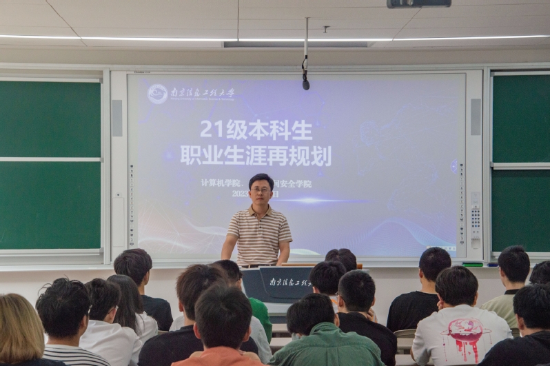 6月7日下午,计算机学院、网络空间安全学院于明德楼N208教室举办了21级本科生职业生涯再规划讲堂暨校友经验分享会。学院党委副书记、副院长朱文镇,2010级校友南京艾瑞集团江北片区总监李智彬,2019级校友吉龙,21级辅导员张乐涵、李家以及有意向就业的本科生参加了此次会议。