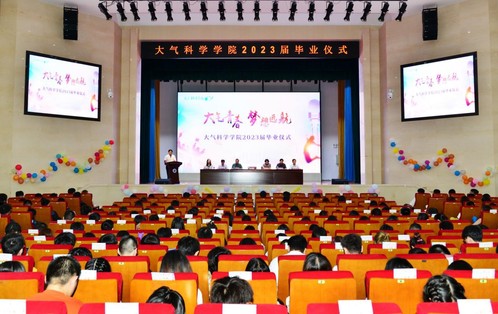 6月9日下午,大气院2023届毕业仪式在风云剧场举行,本次仪式主题为“大气青春,梦想远航”,院长周波涛,党委书记周淑琴、副院长赵海坤、朱志伟、李青青、尹志聪出席。教师代表、班主任、辅导员、2023届全体毕业生参加此次活动,仪式由学院党委副书记、副院长张皓主持。