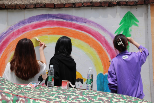 绘画完成后,校门口原本灰白的墙体上呈现出一幅幅精美的画卷,孩子们的一天从入园到上课、吃饭、午休、玩耍再到放学,生动的展示在了七面墙上,老师和孩子都赞赏不绝。一点一墨皆关怀,一笔一画皆童心。志愿者们不仅在创作中收获了快乐与满足,更给“来自星星”的孩子的校园增添了一道绚丽的色彩。这个炎热又难忘的上午,会是志愿者们青春的定格。