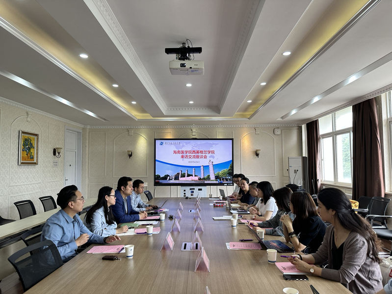 6月6日上午,海南医学院西英格兰学院党委书记李果果一行来校调研交流,雷丁学院副院长(主持工作)郭栋、副院长周锦、副院长陈耀登、副院长(挂职)唐旭出席会议。会议由郭栋主持。