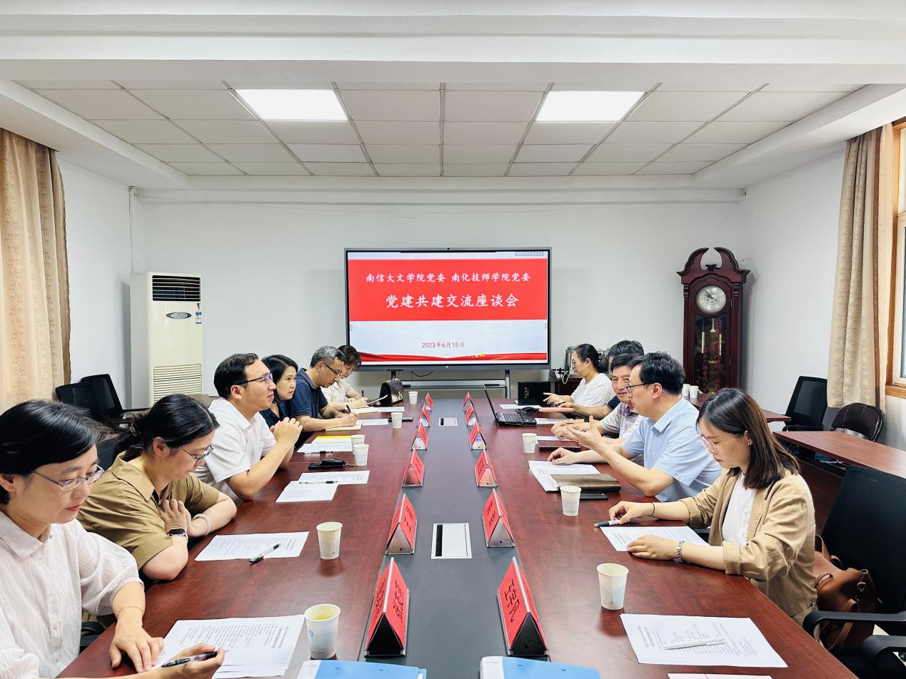 为深入推进学习贯彻习近平新时代中国特色社会主义思想主题教育,6月15日下午,文学院党委副书记(主持工作)郭雨、院长赵霞率队赴南京化工技师学院开展党建共建交流活动并签署党建共建协议。南京化工技师学院校长郑骏,党委书记蔡卫星及相关人员,文学院党委副书记、副院长吴鹏飞和各教工支部负责人出席会议。会议由南京化工技师学院党委书记蔡卫星主持。