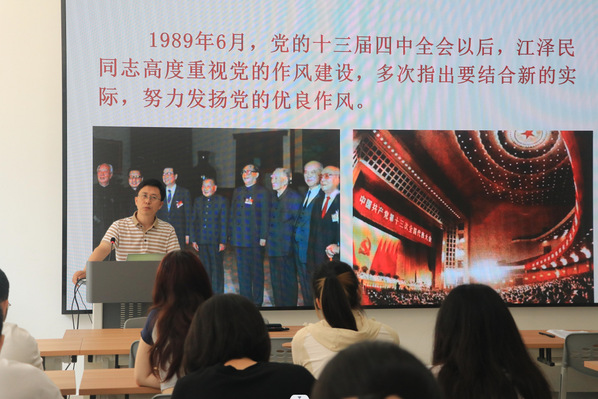 课程伊始,朱文镇带领同学们回顾了中国共产党百年历程。他谈到,作风建设是党的建设的永恒主题,党的优良作风是党的性质和宗旨的集中体现,是中国共产党区别于其他政党的显著标志。我们党作为百年大党,始终把作风建设摆在关系人心向背和党的生死存亡的政治高度和重要位置,同学们要坚持以习近平新时代中国特色社会主义思想为指导,不断增强“四个意识”,坚定“四个自信”,做到“两个维护”,做习近平新时代中国特色社会主义思想的坚定信仰者忠实实践者。