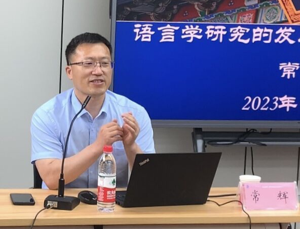 6月15日上午,“明德·语言文化跨学科高层论坛系列讲座”在文德楼N402顺利举办,本次学术报告邀请到上海交通大学外国语学院院长、博士研究生导师常辉教授做“语言学研究的发展趋势及前沿课题”主题讲座。讲座由文学院院长赵霞教授主持,文学院副院长杜玉生教授,学院部分教师、研究生及本科生参加本次讲座。