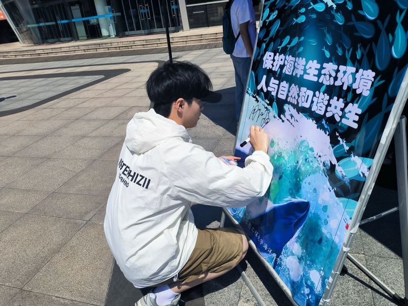 本次活动围绕今年的主题“保护海洋生态环境 人与自然和谐共生”,主要通过海报展板和宣传单页的形式向大家宣传海洋保护的知识与理念,呼吁人类减少对海洋的破坏,维护健康的海洋生态系统。活动现场海洋科学学院的志愿者为参加活动的师生讲解海洋科普知识,涵盖海洋生态、海洋资源和海洋技术等方面,同时设置了“快问快答”有奖答题环节,同学们在游戏互动中感受保护环境、保护海洋的重要意义。