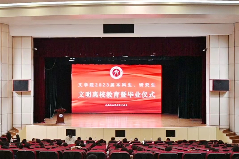 6月16日下午,文学院在大活剧场举行2023届文明离校教育暨毕业仪式。全体院领导、系主任、学位点负责人、毕业研究生导师、辅导员和毕业班班主任等教师代表出席活动,2023届全体毕业本科生、研究生以及部分低年级学生代表共400余人参加了活动。活动由学院党委副书记(主持工作)郭雨主持。