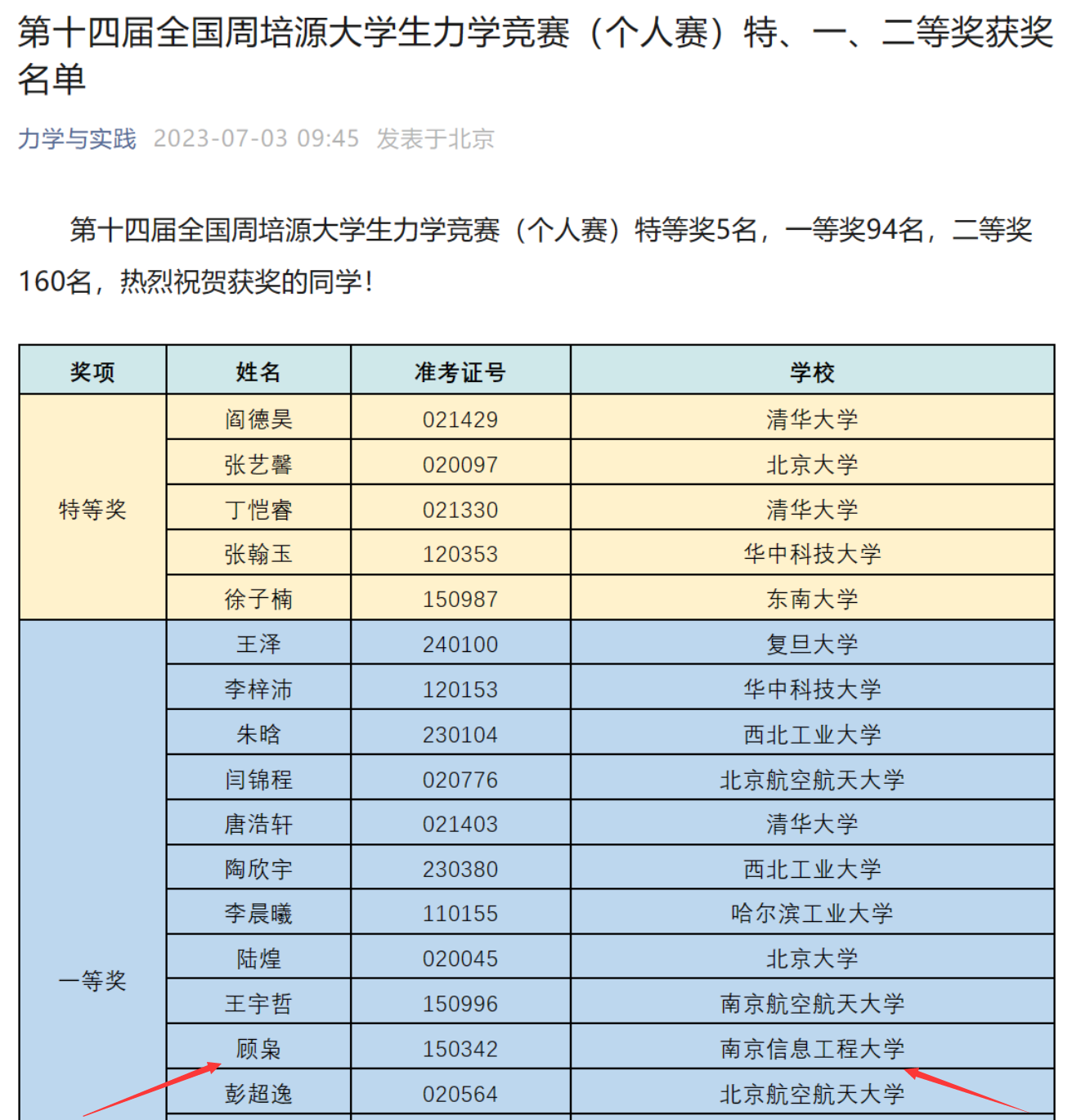 同时,顾枭同学也荣获第十三届江苏省大学生力学竞赛(本科组个人赛(理论赛))特等奖,孙天臣、张琳哲同学获得省赛一等奖,耿瑞满、余文豪、蔡春昊、陆兆飞、滕珺辉、邱宏朗、向尚、夏靖杰、张晟杰、陈立为等十位同学获得省赛二等奖。