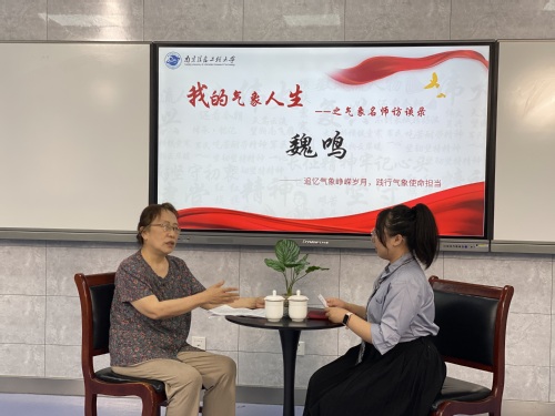 风好正是扬帆时,奋楫逐浪向未来。为了响应新时代伟大号召,促进我国气象科技发展,进一步发扬和传承老一辈气象人奋勇拼搏、攻坚克难的科研精神,大气物理学院“我的气象人生”系列活动之“气象名师访谈录”第四期节目于2023年7月7日在气象楼1210如期开机。本期邀请到南京信息工程大学魏鸣教授作为访谈嘉宾,为大家讲述她的气象人生。