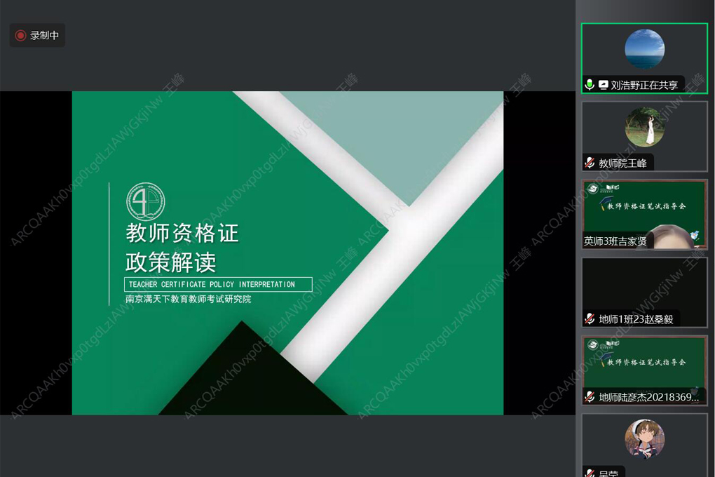 8月2日,教师教育学院邀请具有多年教师资格证考试培训经验的刘浩野老师,为学院2021级全体本科生开展了以“教师资格证政策解读”为主题的线上讲座。讲座内容围绕“为什么考”“考什么”和“怎么考”三个核心问题展开。刘浩野重点结合各科考试模块占比和题型分布,深入浅出地讲解了科学备考的方法和路径,提出做好规划均衡发展、掌握有效记忆方法、吃透教材建立自己的知识体系等备考关键点,帮助同学们加深了对教资考试的认识,理清了备考思路。最后,刘浩野还与同学们进行了线上互动,针对大家的问题予以解答。
