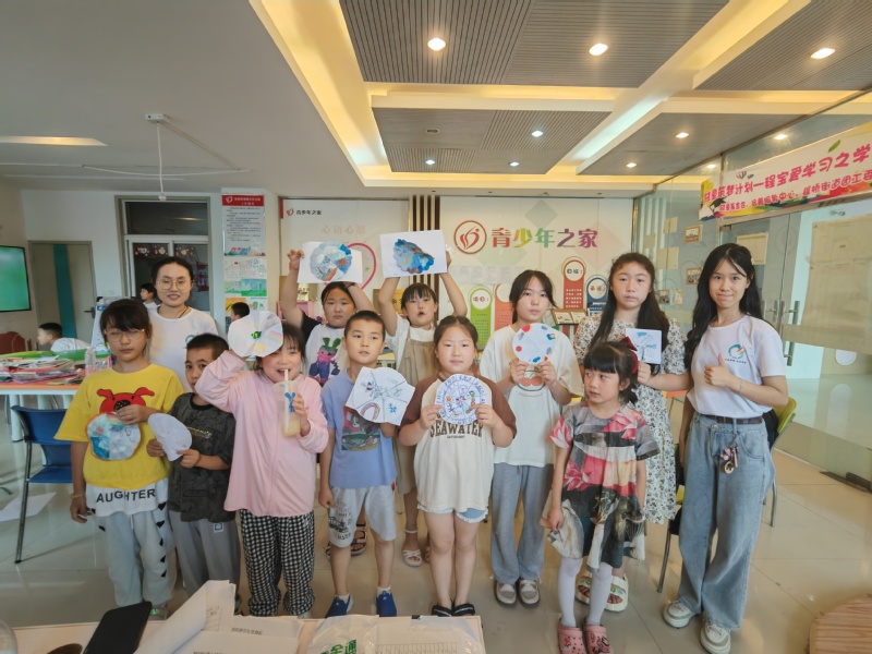 在桂花村爱心暑托班的课堂上,地科院“执笔绘乡冶”小队给街道里的小朋友们科普农民画相关特色知识,并带着小朋友们一同作画,手绘了一幅幅风格各异的农民画。与此同时地科院“万象耕心,地蕴新苗”小队发挥学院气象特色优势,结合地理学科特点,展开了一系列气象科普讲座,帮助小朋友们进一步了解气象常识。