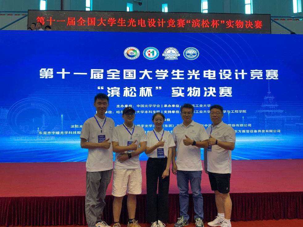 8月23日至25日,第十一届全国大学生光电设计竞赛(滨松杯)实物决赛在哈尔滨工业大学举行。由物理与光电工程学院2021和2020级光电信息科学与工程专业学生组成的两支参赛队伍脱颖而出,分别获得了全国二等奖和全国三等奖,这是我校历史上最好的成绩。据悉,经过全国各分赛区选拔,共有134所高校的326支队伍晋级决赛,其中有86所高校的175支队伍参加了现场实物决赛。