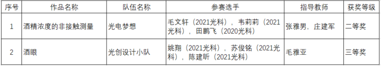 最终,我校1支队伍获“酒精”赛题全国二等奖,1支队伍获“酒精”赛题全国三等奖,这是学院、学生和指导教师共同努力的结果。通过本次大赛,学生们不仅获得了荣誉,其创新能力、动手能力、协作能力和临场应变能力都得到了大幅的提升。