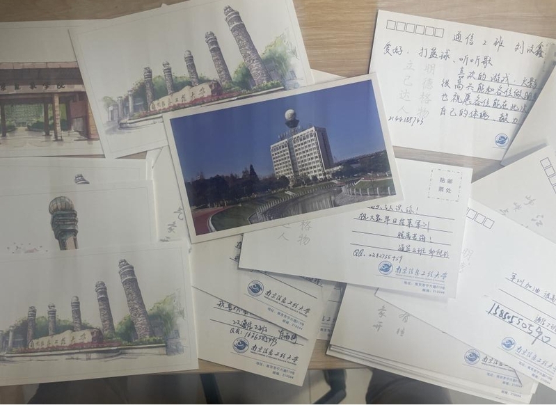 学院给同学们送来了清凉解渴的酸梅汤饮料,并为以班级为单位组织了军训合影。此外,学院还在军训期间开展了以“军训加油,很高兴认识你”为主题的明信片交换活动,同学们在明信片上写上温暖祝福和军训寄语,在班级内部随机交换,让大家迅速互相认识,增进班级凝聚力。