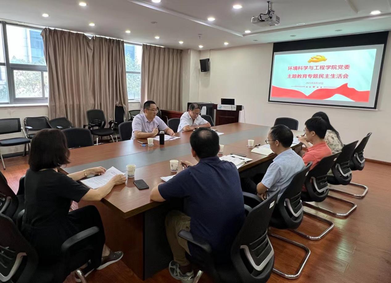8月30日下午,环境科学与工程学院党委召开学习贯彻习近平新时代中国特色社会主义思想主题教育专题民主生活会。党委巡察工作办公室许尝君到会指导。院党委书记屈家安、院党委副书记许敏、副院长徐德福、副院长杨洋参加会议,院长廖宏、副院长乐旭列席会议。会议由屈家安同志主持。