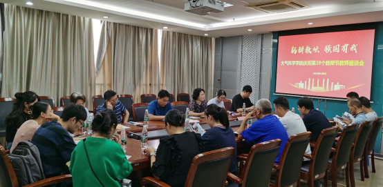 在第39个教师节来临之际,9月8日上午,大气科学学院在气象楼713会议室召开庆祝教师节专题座谈会,交流从教心得,共话学院发展。院长周波涛、党委书记周淑琴和学院教职工代表参加座谈会,会议由周淑琴书记主持。