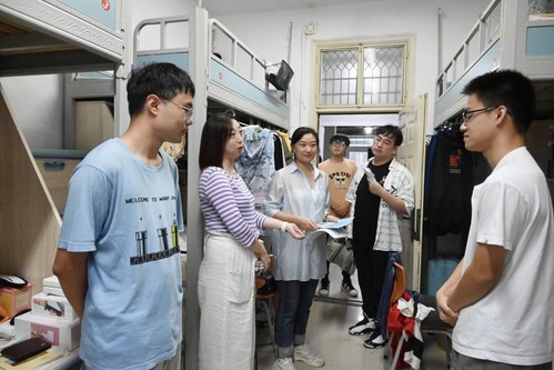 张皓以及辅导员老师深入2021级大类分流学生宿舍,了解同学们对新学院的适应情况,对大家提出的问题进行耐心细致的解答,并且鼓励大家积极参加学院各类特色活动,积累经验、增长才干,为学院的建设贡献青春力量。辅导员老师们还逐一向同学们发放学院专门印制的防诈骗宣传单,提醒同学们时刻保持警惕,不随意泄露个人信息,不让诈骗分子有机可乘。