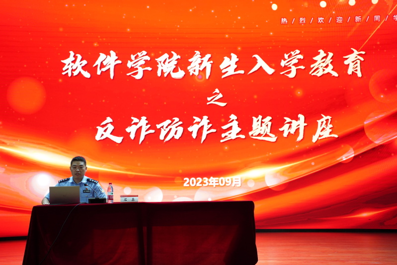 为进一步加大校园反诈防诈宣传力度,提升学院学生的反诈防诈意识,守护平安和谐校园,9月13日,软件学院在大学生活动中心小剧场进行新生入学教育之反诈防诈知识讲座,讲座邀请江北新区分局刑事犯罪侦查中心反诈大队的石鑫警官作为主讲嘉宾,软件学院党委副书记水泱、全体辅导员、2023级新生以及其他年级学生参加。讲座由水泱主持。