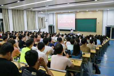 随后,遥测院院长童旭东以“青春重彩 人生起航”为题为全体新生讲授“开学第一课”。童院长首先介绍了遥测院的历史沿革与光荣传承,并从学科专业、师资队伍、人才培养、平台建设、科学研究等方面介绍了学院发展概况。接着,他从遥感科学与技术、测绘工程、地理空间信息工程三个专业分别入手,向大家普及了国内外科技成果与前景,并围绕树立远大理想、认真完成学业、提高综合素质等角度,激励全体同学把自己的前途与国家的命运和民族的发展紧密结合起来,练就强壮豁达的体魄与胸怀,培养严谨认真的治学做人态度,树立信心、锐意进取。