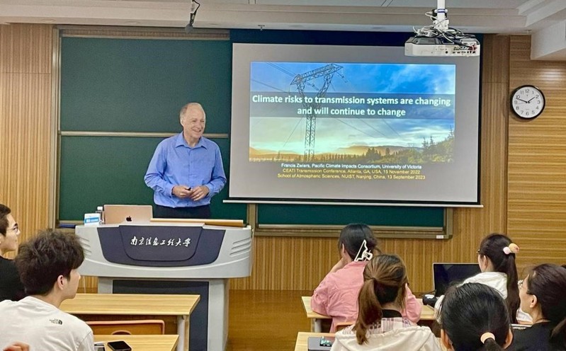9月13日下午,大气科学专业拔尖班在尚贤楼402室开展“学术讲座”,也是拔尖班同学们本学期第一次全英文报告。报告邀请到加拿大皇家科学院院士Francis Zwiers教授,他以“Climate Risks to Electrical Transmission Systems Are Changing, and Will Continue to Change”为题介绍了电力系统工程师们面临的气候变化风险,报告由拔尖班班主任周洋老师主持,2020-2022级拔尖班的同学参加了报告。