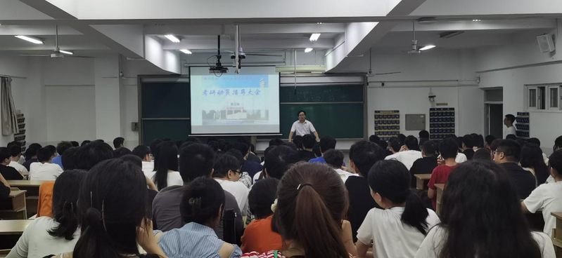 为进一步加强学院学风建设,创造优良学风,帮助入学即大三的专转本新生更早更科学规划自己的大学生涯,9月18日晚,应用技术学院组织2023年专转本新生中意向考研的近200名学生,在滨江楼N404教室举办了“精工于公”职业生涯规划课堂之新生考研动员指导大会。副院长(主持工作)陈玉林、副书记卢愿清及新生辅导员李俊平参加了本次大会。会议由副书记卢愿清主持。