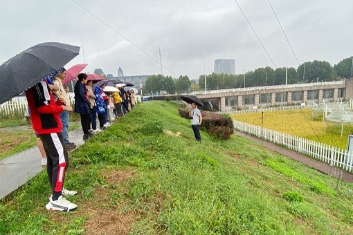 23日下午,开展了小小气象员体验活动,来自南京多所中小学对气象充满兴趣的110余名“小小气象员”,分三批次依次在基地进行了参观。在应用气象试验站,大田里奇奇怪怪的各式仪器设备引起了小朋友们的好奇心,江晓东副教授为大家介绍了基地正在开展的试验、以及气候变化与粮食安全的相关科学知识。今天迎来一个特殊的节气,秋分,江老师为现场小朋友们普及了秋分的相关气象知识。随后,老师介绍了在农业气象观测中用到的一些气象仪器,并演示了几种仪器的观测方法。现场提供了可供试用的便携式气象计,小朋友们很感兴趣,纷纷上前试用,在志愿者的辅助下,小小气象员们分别带着仪器完成了温室气象测量工作。