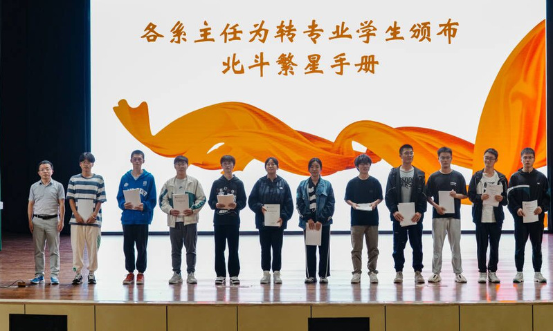 接着,举行电信院“北斗繁星”启航手册颁发仪式。电信院各系主任为2022级转专业学生、秋季直通车学生颁发手册并合影留念。