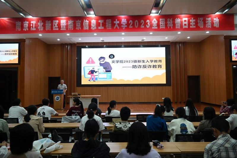 为进一步提高2023级新同学防范电诈的安全意识,增强反诈防骗能力,持续营造人人识诈、全民反诈的浓厚氛围,9月21日晚,文学院联合盘城派出所在西苑滨江报告厅举办文学院2023级新生防诈反诈专题入学教育。本次讲座由吴鹏飞副书记主持,特邀盘城派出所常欣妍、孙跃两位警官主讲,文学院新生辅导员李渊和全体2023级本科生、研究生新生参会。