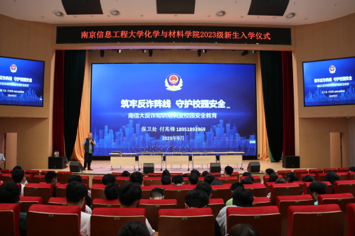 为进一步做好“反诈骗,防诈骗”安全教育工作,引导同学们增强安全防范意识和提升安全防护能力,营造平安和谐的校园环境,9月26日下午,化学与材料学院特邀保卫处、武装部副处长、副部长(主持工作)付兆锋在信息科技大楼报告厅举办2023级新生防诈反诈知识讲座。本次讲座由化学与材料学院党委副书记、副院长孙加兴主持,学院辅导员和全体2023级本科生新生参会。