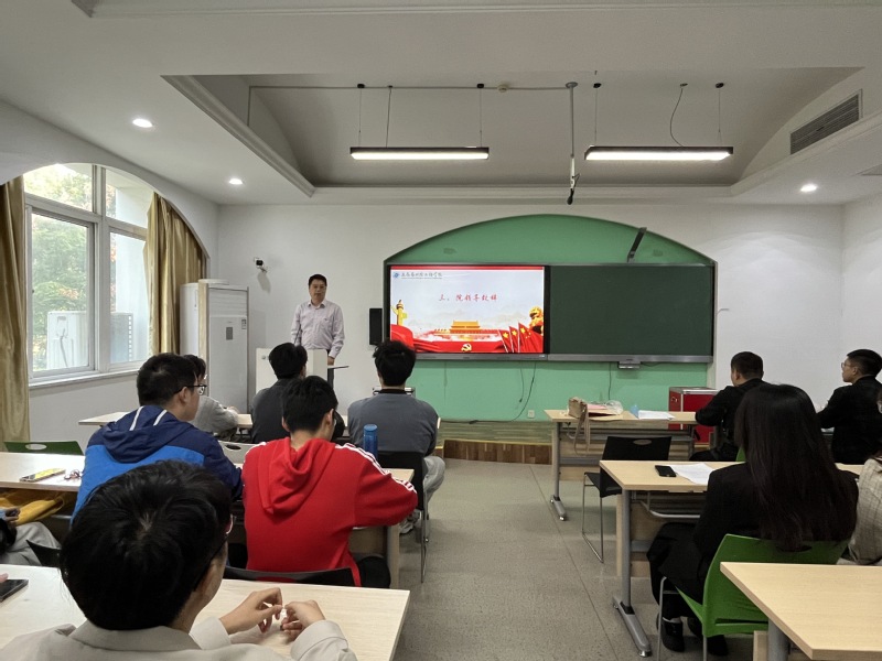 高书记代表学院党委致辞。他对研究生党支部第二届委员会的工作表示肯定和感谢,并对新一届研究生支委会和全体党员提出要求:一要进一步强化研究生党支部的思想引领,加强政治理论学习,提升研究生党员的政治理论水平;二要进一步体现先进性,发挥研究生党员在科研、就业、安全等方面的先锋模范作用;三要进一步提升工作创新性,在研究生党日活动、研究生党员培养方面进一步加强工作创新。