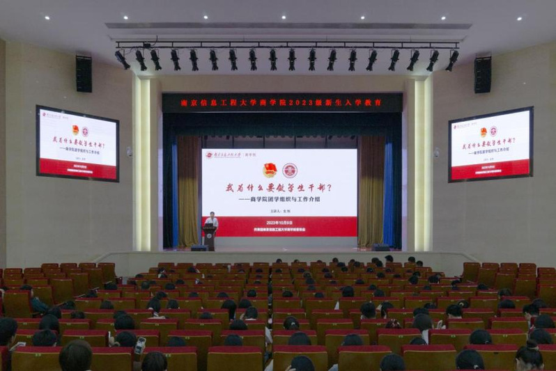 为做好新生入学教育工作,充分发挥第二课堂在人才培养中的积极作用,引领学生自我管理、自我教育、自我服务,鼓励学生积极参加校内外各类竞赛和实践活动,商学院于10月9日在风云剧院举行了2023级新生入学教育讲座。讲座由商学院分团委书记史恒担任主讲,2023级商学院全体新生参加了活动。