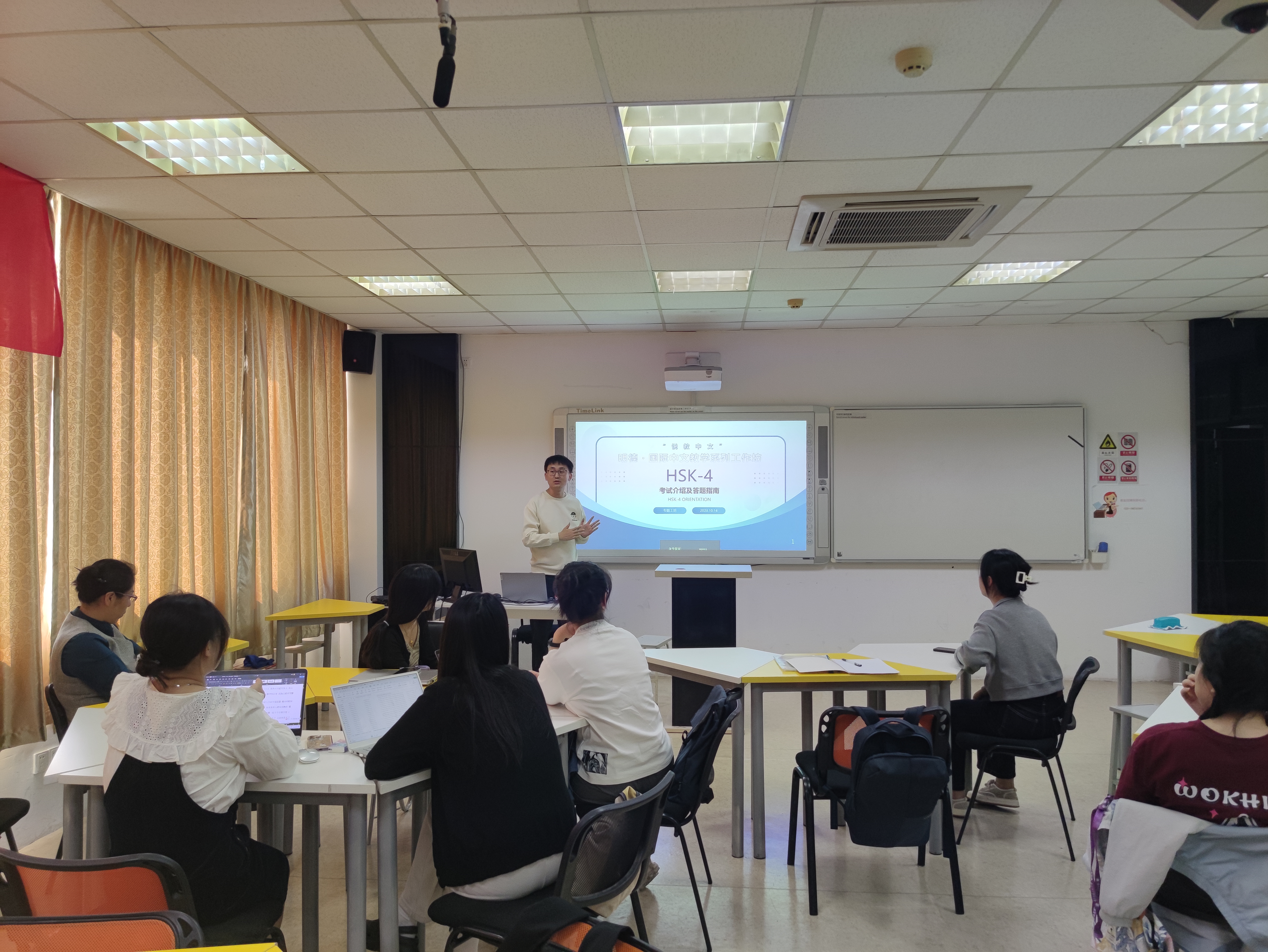 活动伊始,孙慧莉对HSK考试基本情况进行了介绍,并向研究生展示了南京信息工程大学汉语水平考试考点,同时还介绍了汉语考试相关网站,鼓励汉语国际教育专业学生积极利用互联网资源及时了解专业相关知识,提高专业素养。