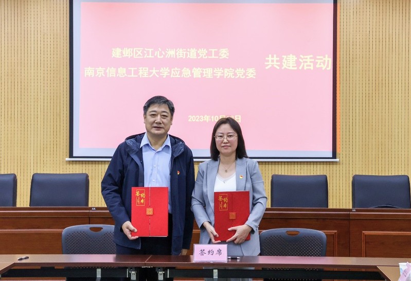 活动现场,江心洲街道党工委与南京信息工程大学应急管理学院党委、江心洲洲岛绿园社区党总支与应急管理系教工党支部分别进行了党建共建签约。未来,双方将在加强区域协同发展、双向挂职交流、人才培养、社会基层治理、防灾减灾深度融合等方面开展全方位合作。同时,南京信息工程大学应急管理学院教学实践基地落地洲岛绿园社区,实现了应急管理人才培养、安全文化宣传、应急科普实践资源有效融合。