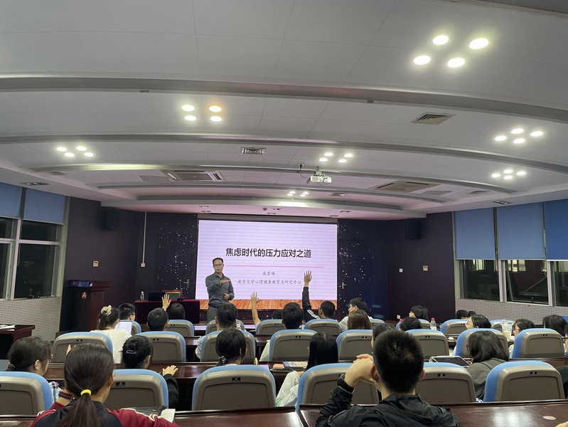 为增强拔尖班学子心理素质、培养积极阳光的心态,促进学生全面发展、健康成长,10月17日,大气院在培训楼c101举办了“大气·心语——焦虑时代的压力应对之道”心理健康教育专题讲座。本次讲座特邀南京大学心理健康教育与研究中心专职教师成雪峰老师主讲,大气科学拔尖班全体学生参加。